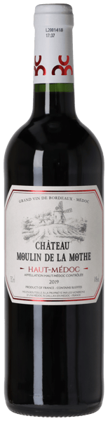 Château Moulin de la Mothe Haut-Médoc er i topårgangen 2019 fremstillet på et blend af 85 % Merlot og 15 % Cabernet Sauvignon, som selekteres fra et dobbelt bæredygtigt certificeret mikroterroir på 7,45 hektar. Perfekt beliggende i hjertet af toplandsbyen Saint-Seurin-de-Cadourne – nærmest direkte op ad grænsen til Saint-Estèphe! Traditionel vinificering med 3 ugers macerationstid, hvor drueskindet føjer seriøs farve, karakter og tanniner vinen.