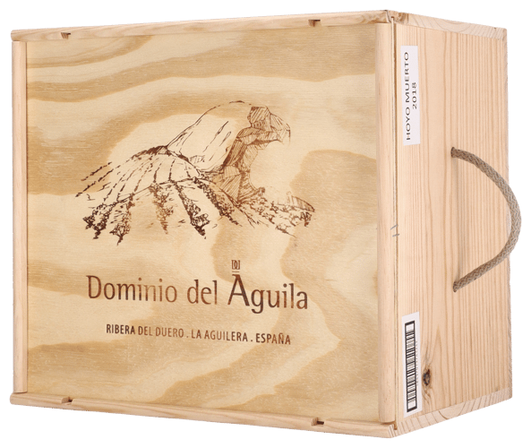 Hoyo Muerto 2018 er skabt på primær Tempranillo, som høstes fra 0,42 hentar på parcellen Hoyo del Muerto i 845 meters højde. Druerne fra dette kølige terroir er i reglen de sidste, der høstes hos Dominio del Aguila, der beskriver udvælgelsesprocessen som decideret udmattende. De to druesorter, Tempranillo og den grønne Albillo Mayor, vinificeres sammen for at få opnå en bedre gengivelse af terroiret. Efter høsten den 13. oktober 2018 placeres de hele drueklaser i cementkar, hvor de frem til 27. oktober fodtrædes dagligt – 15 minutter morgen og 15 minutter eftermiddag. Efter hver fodtrædning hældes spande med den gærende most tilbage udover skallerne for optimal ekstraktion af smag, karakter og tanniner! Herefter endt gæring omstikkes rødvinen et brugt fransk egetræsfad i Aguilas underjordiske kældre, hvor den gennemgår den malolaktiske gæring. Herefter følger yderligere to omstikninger til andre franske fade (hhv. juni 2019 og november 2022). Den 1. september 2025 – efter vanvittige 81 måneders fadlagring – er Hoyo Muerto 2018 omsider klar til manuel flaskning. Vinen er aftappet uden klaring og filtrering. Produktionen begrænser sig til 270 flasker.
