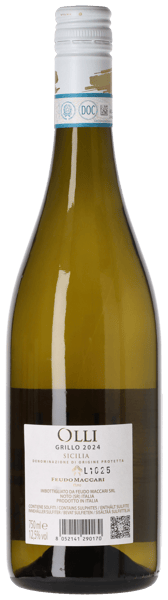Feudo Maccari Olli er fremstillet på 100% Grillo, som er en af Siciliens hvide signaturdruer. Druerne håndhøstes fra 20 år gamle "buskvine", som vokser på sydvendte sicilianske vinmarker. Hovedparten af druerne kommer fra enkeltmarken Olli, som er beliggende nær Noto i det sydøstlige Sicilien. Markens navn er en hyldest til en gammel vinbonde fra egnen. Gæret og modnet på ståltank – for en frugtren og autentisk gengivelse af Grillo-druens charmerende karakteristika.