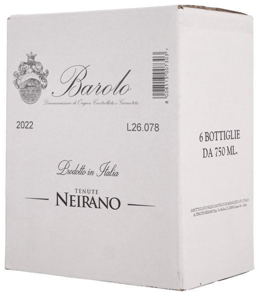 Tenute Neirano Barolo DOCG 2022 er lavet på 100 % Nebbiolo-druer, høstet fra udvalgte parceller rundt i Barolo-distriktet. Efter høsten transporteres druerne til vineriet, hvor de gennemgår en nøje selektering, så kun druer, der lever op til det høje og strenge kvalitetsniveau, anvendes. Herefter påbegyndes gæringen, hvor der under fermenteringen foretages pumping over for at udtrække aroma, farve og struktur fra drueskallerne. Når gæringen er afsluttet, begynder de strenge lagringskrav, som kendetegner DOCG Barolo. Vinen lagres i hele 3 år på store egetræsfade, før den tappes på flaske. Efterfølgende lagrer vinen yderligere på flaske i kælderen i hjertet af Piemonte, inden den frigives.