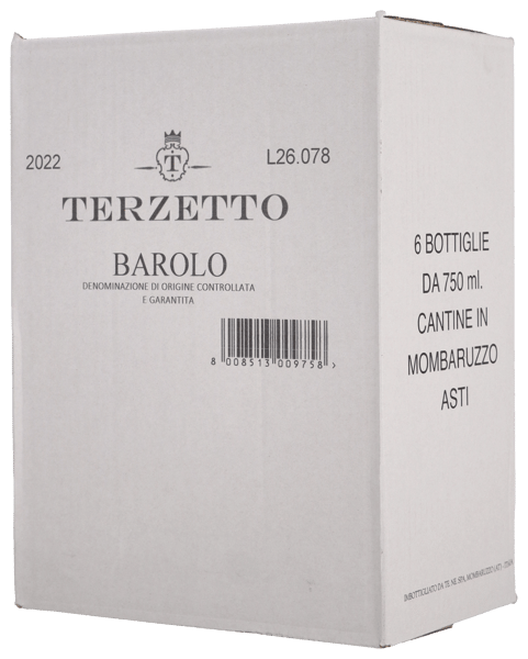 Terzetto Barolo 2022 funkler klar kirsebærrød i glasset med et strejf af teglsten fra fadlagringen… Klassisk, kompleks Barolo-næse med indsmigerende duft af tørrede roser, mørke kirsebær, tranebær, lakrids, kamfer og krydderier, der på elegant vis indhylles af mineralsk skovbund, et strejf af tjære samt lidt kaffe fra den 36 måneder lange fadlagring… I munden er rødvinen tør og fyldig med indsmigerende bærtoner og karakterfuld tekstur. Den modne frugt møder faste, madvenlige tanniner, mineralsk friskhed og urtekrydret dybde. Lang og harmonisk eftersmag med komplekse strejf af tørret kød og læder samt perfekt afstemte fadkrydderier... En helstøbt Barolo i fremragende kvalitet. Drik nu, eller gem +15 år fra høståret.